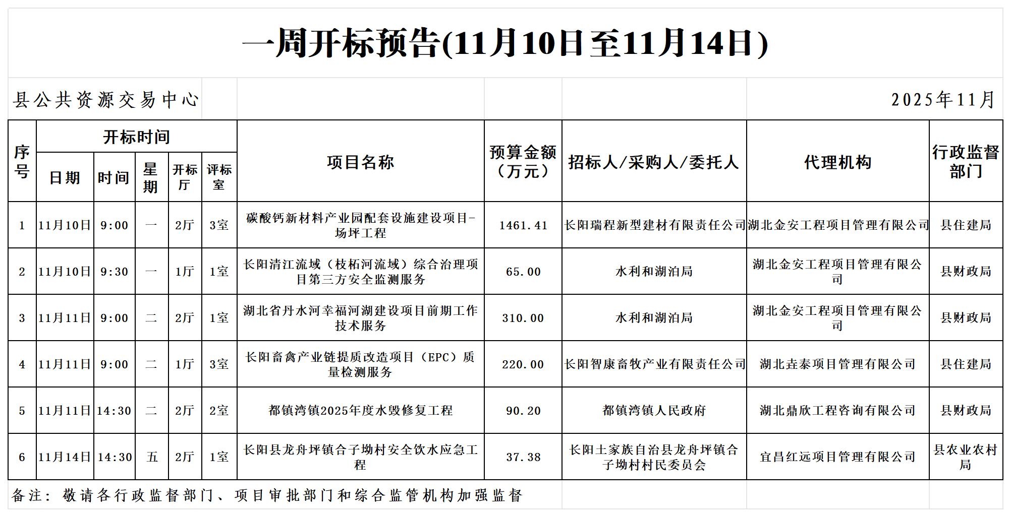 2025年一周开标预告(11月10日至11月14日)