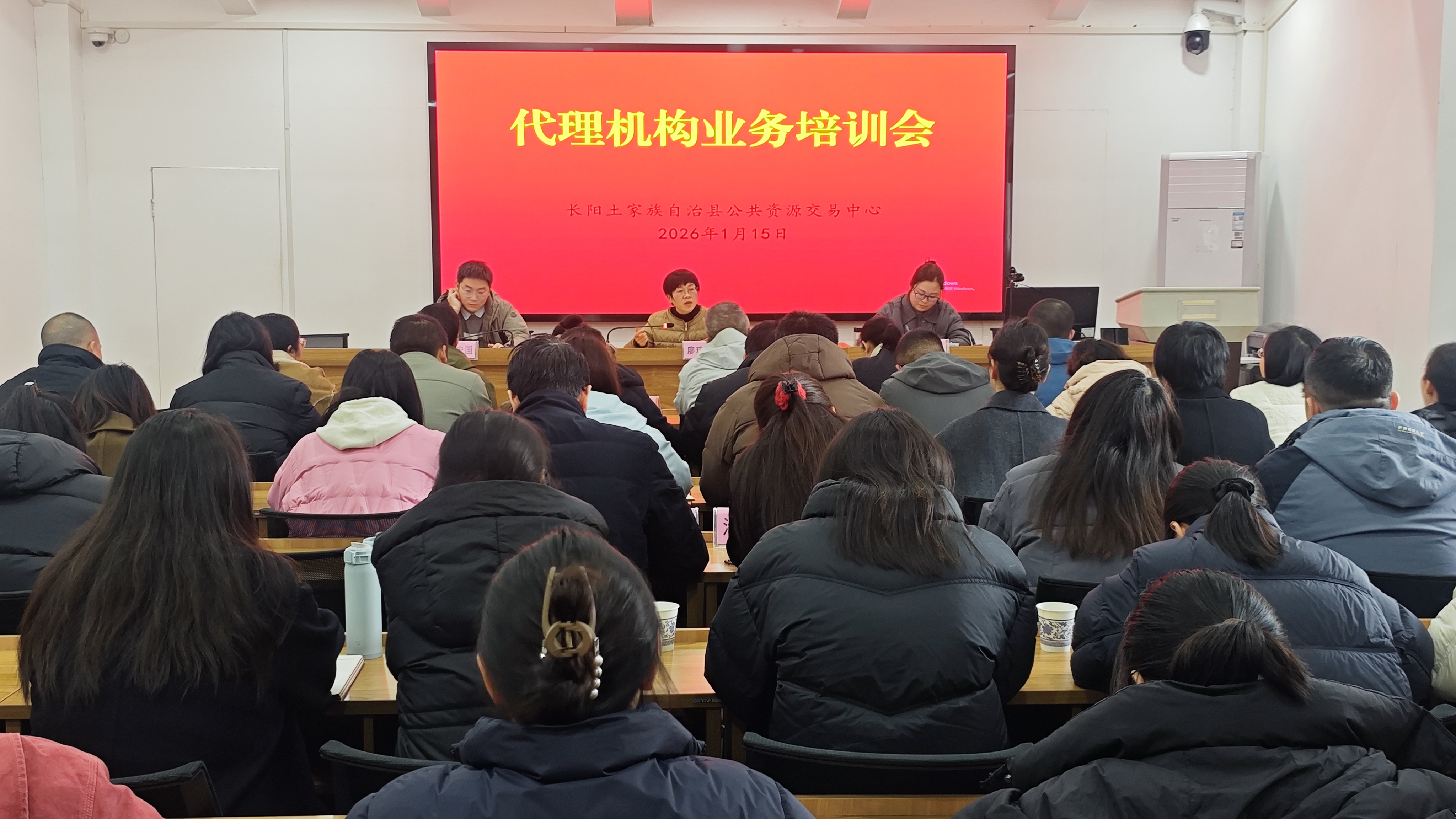 1月15日,长阳土家族自治县公共资源交易中心组织召开全县招标代理机构业务培训会,全县18家招标代理机构的38名业务人员参加培训。