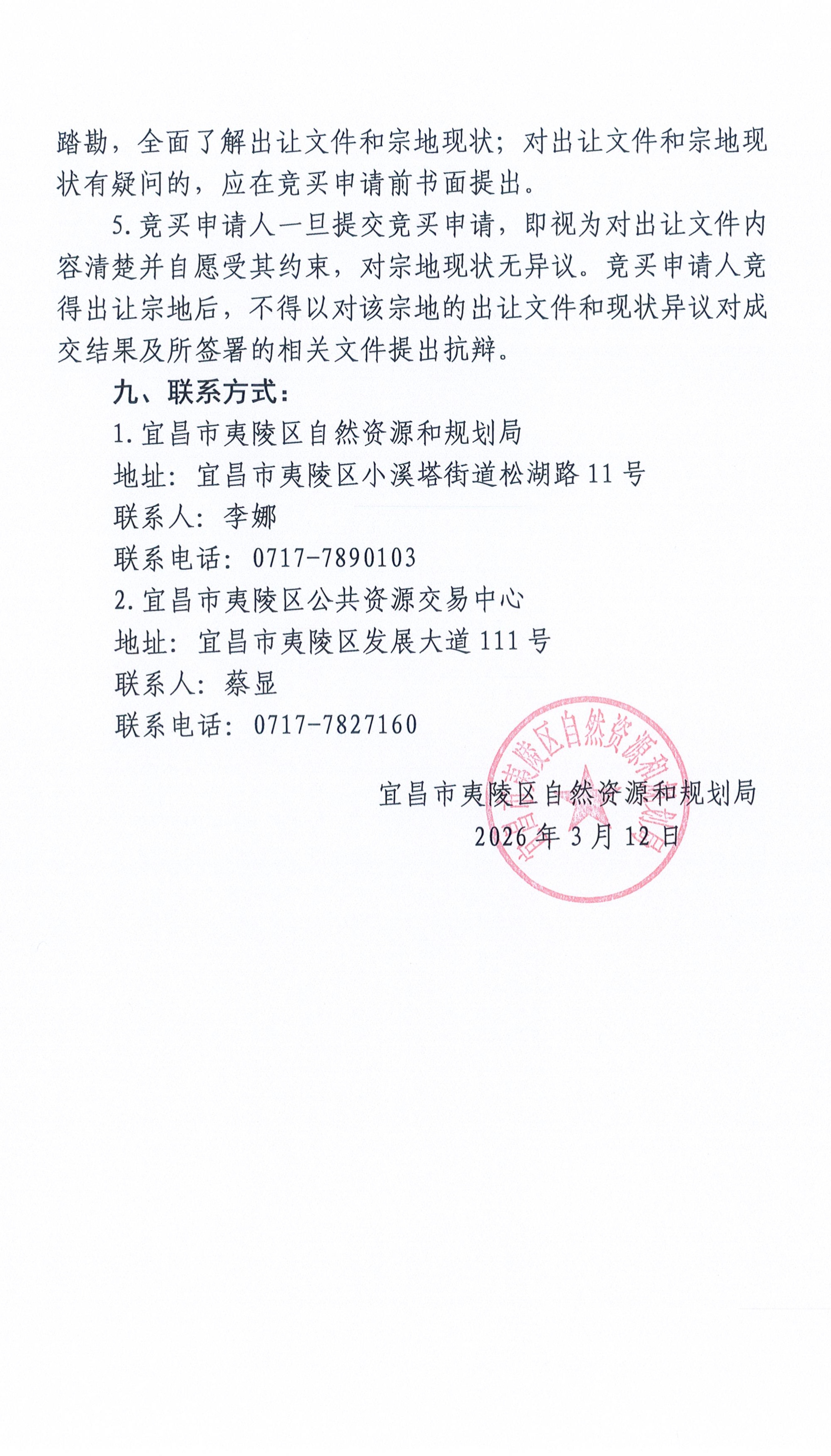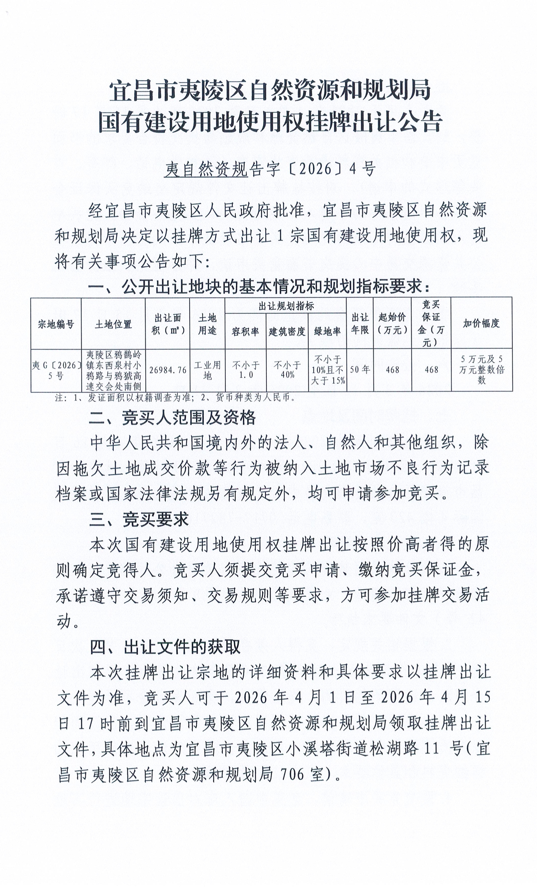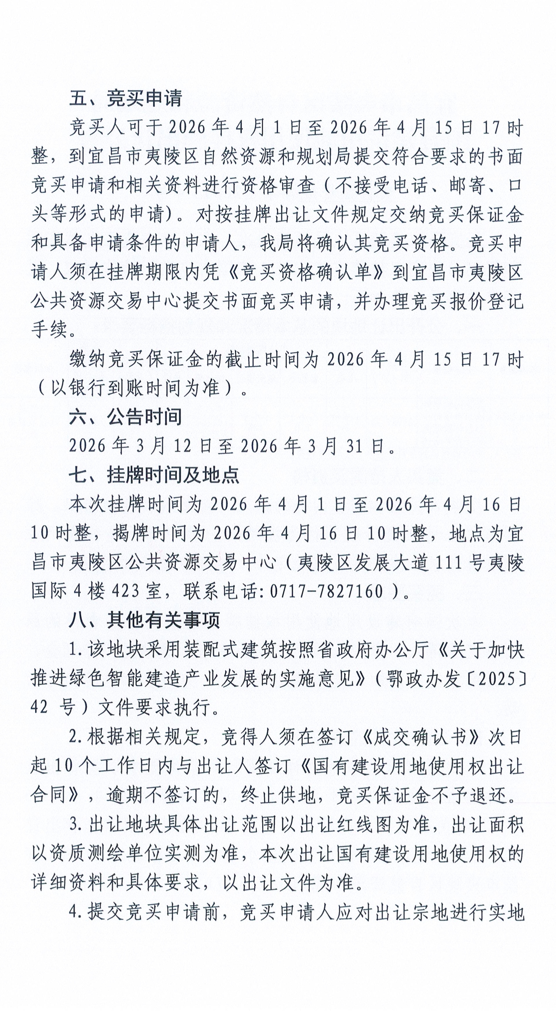 宜昌市夷陵区自然资源和规划局国有建设用地使用权挂牌出让公告