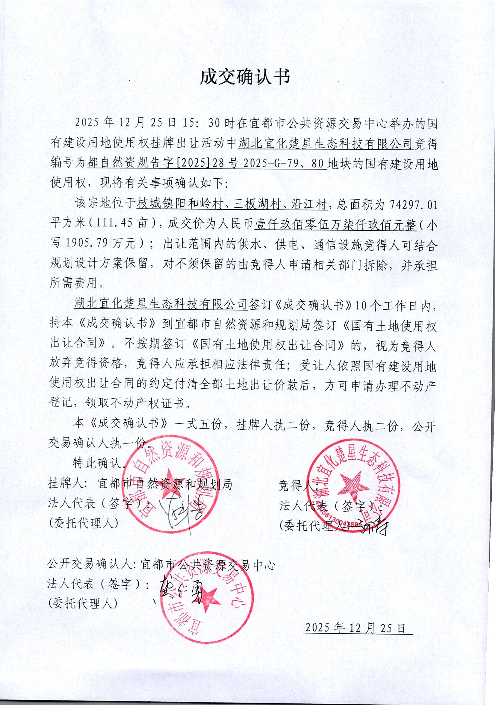宜都市自然资源和规划局国有建设用地使用权挂牌出让公告都自然资规告字[2025]28号地块成交确认书