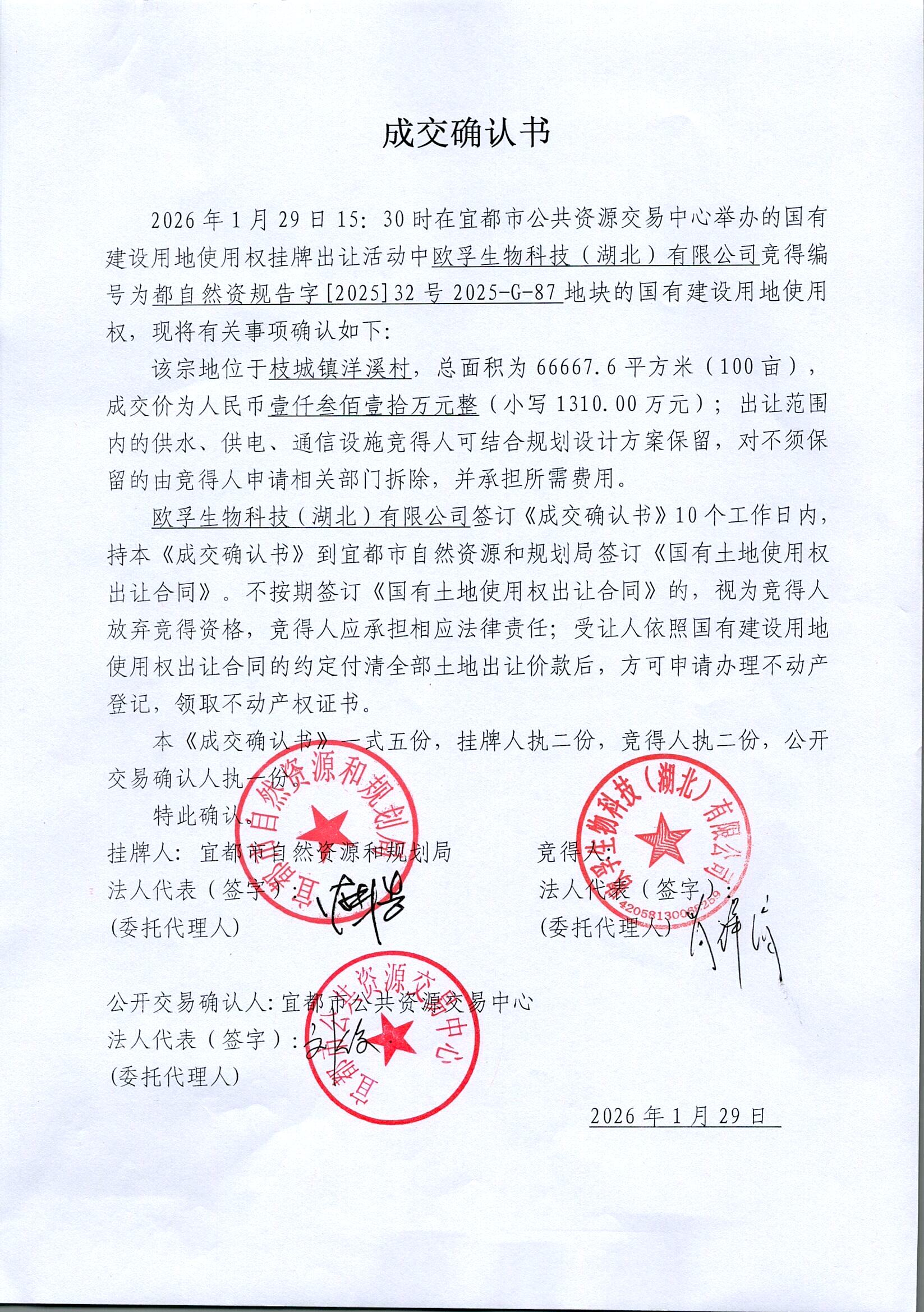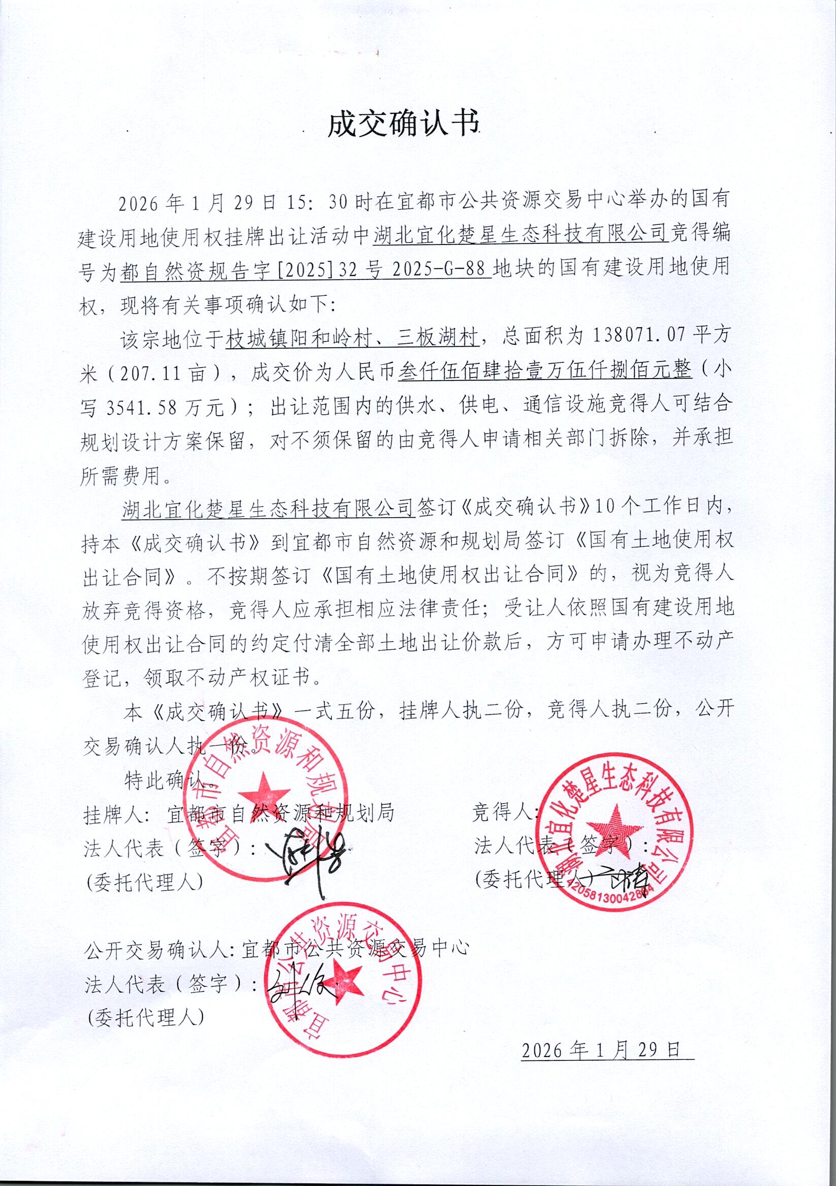 宜都市自然资源和规划局国有建设用地使用权挂牌出让公告都自然资规告字[2025]32号地块成交确认书