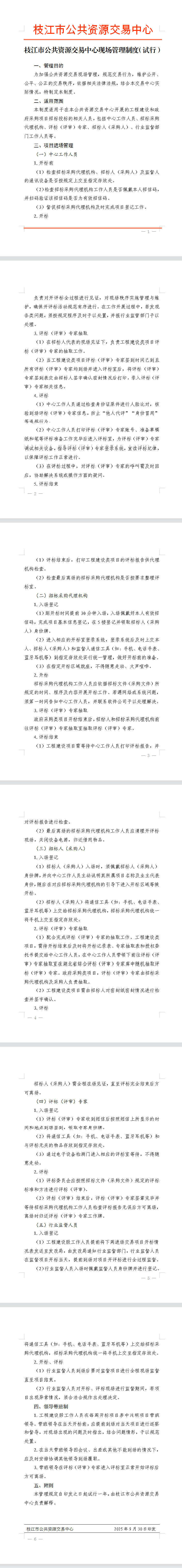 枝江市公共资源交易中心现场管理制度(试行)
