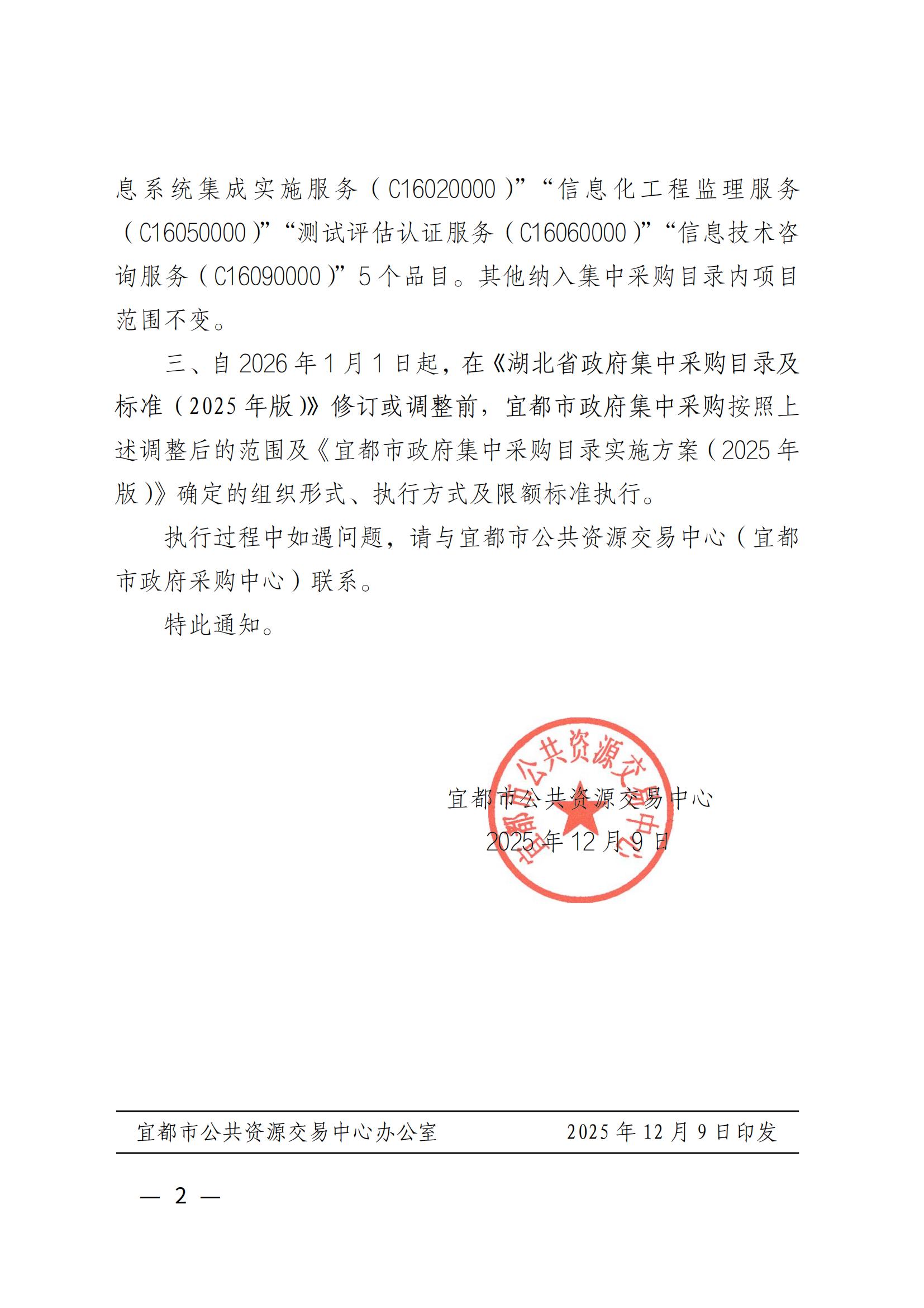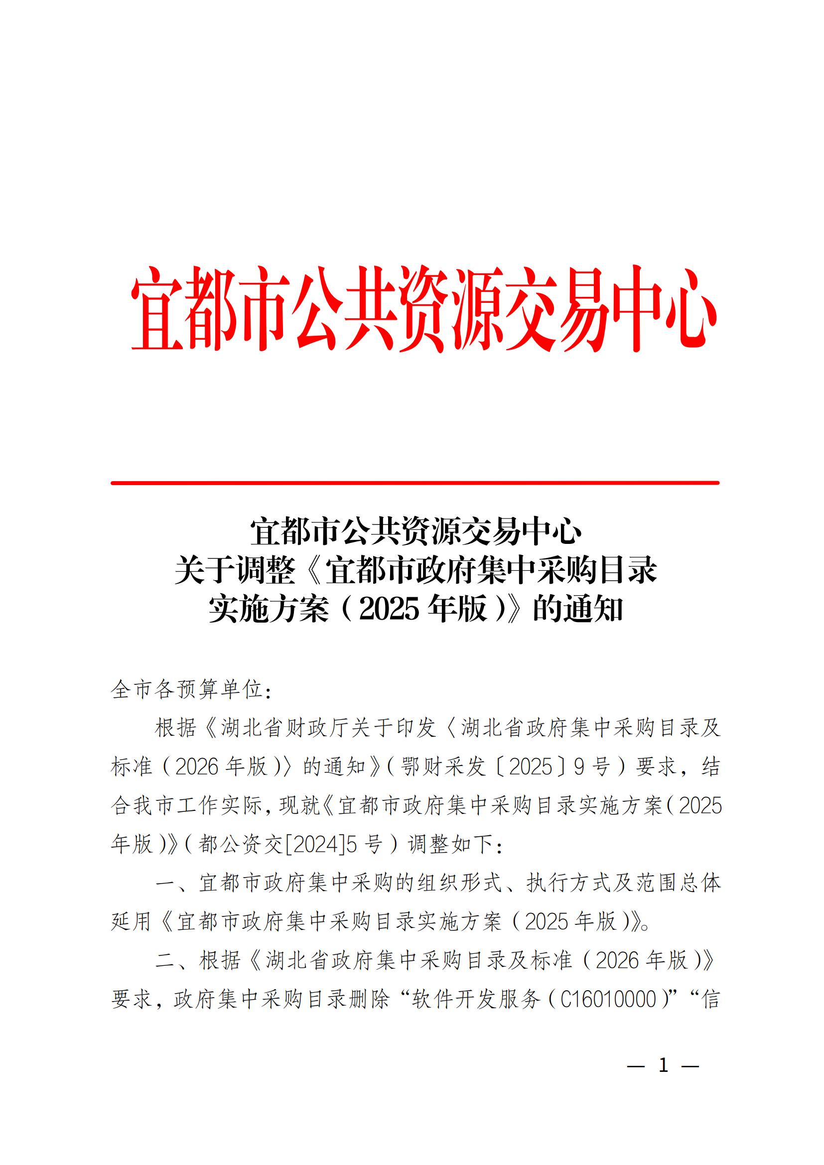 宜都市公共资源交易中心关于调整《宜都市政府集中采购目录实施方案(2025年版)》的通知