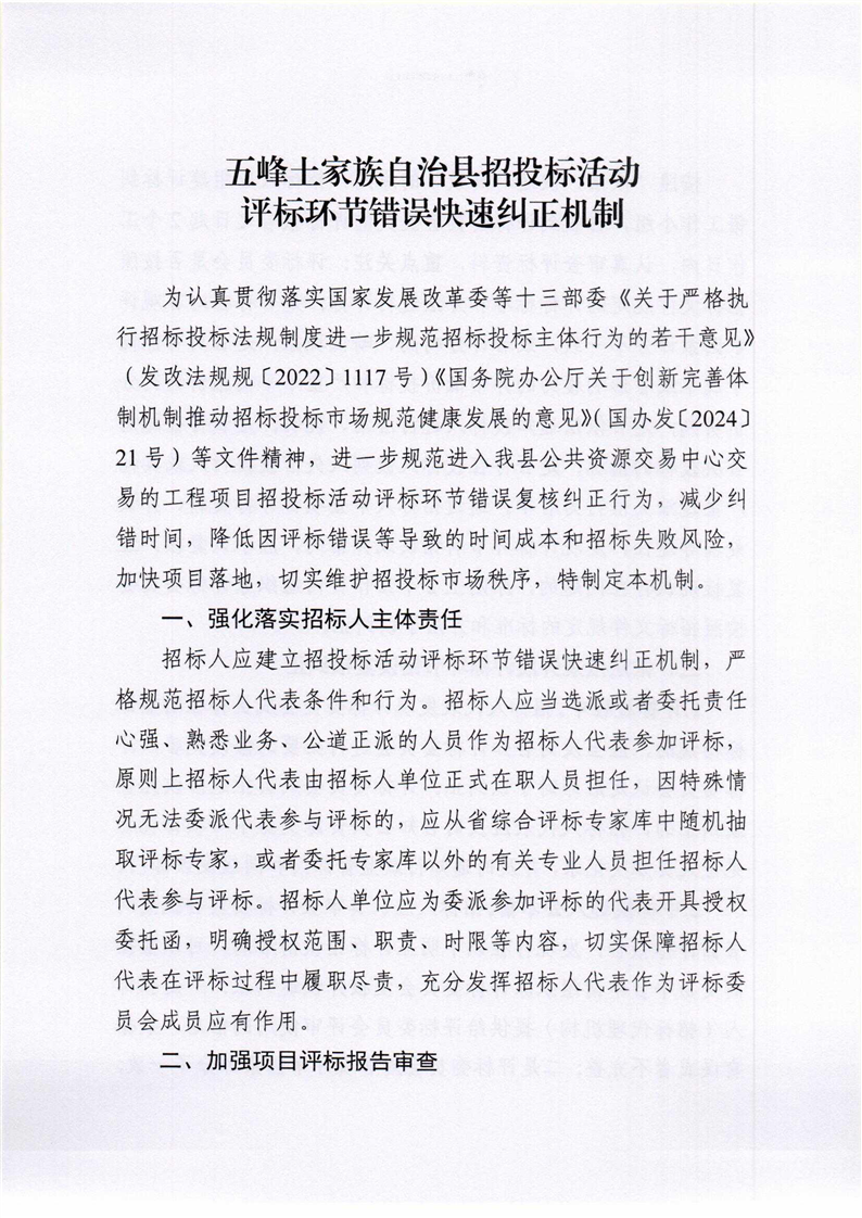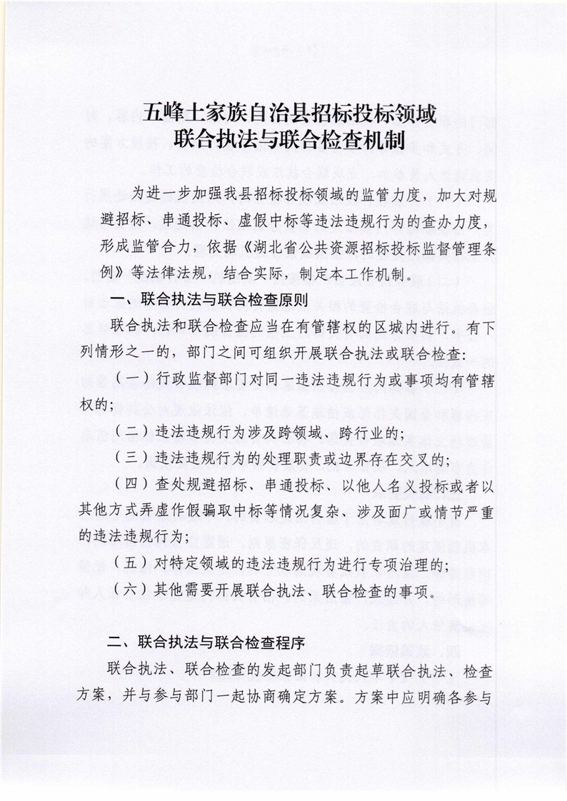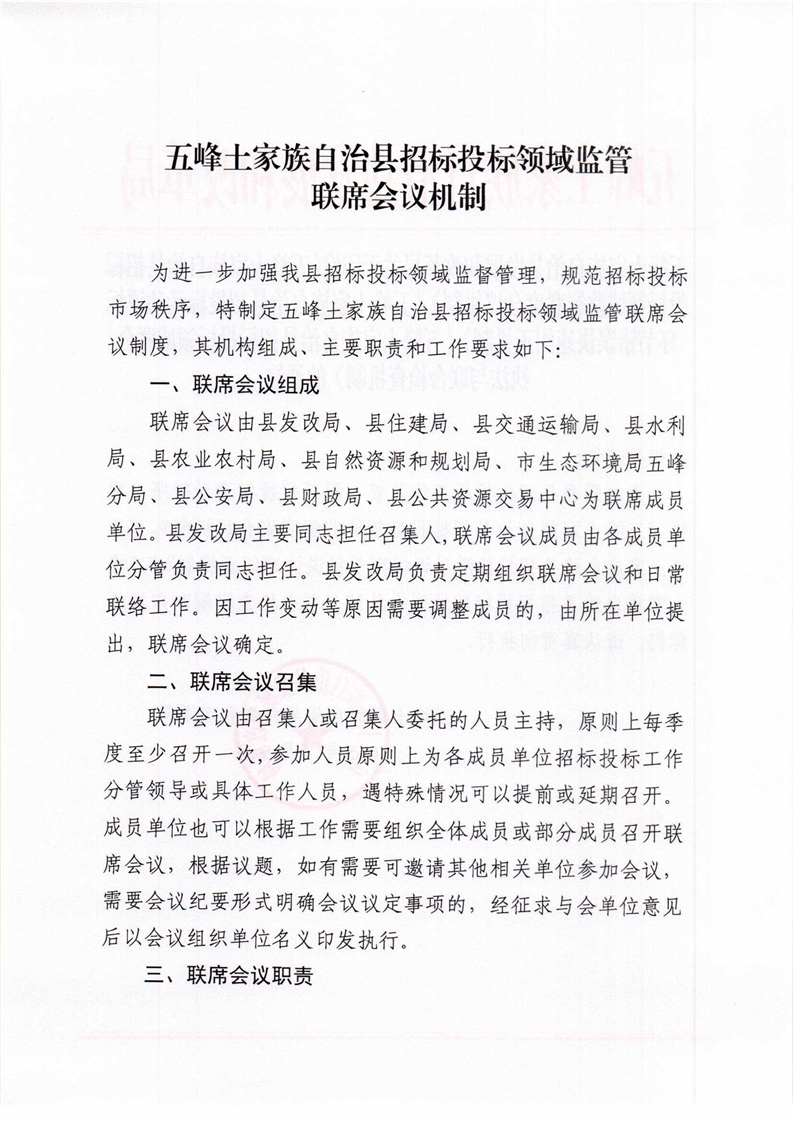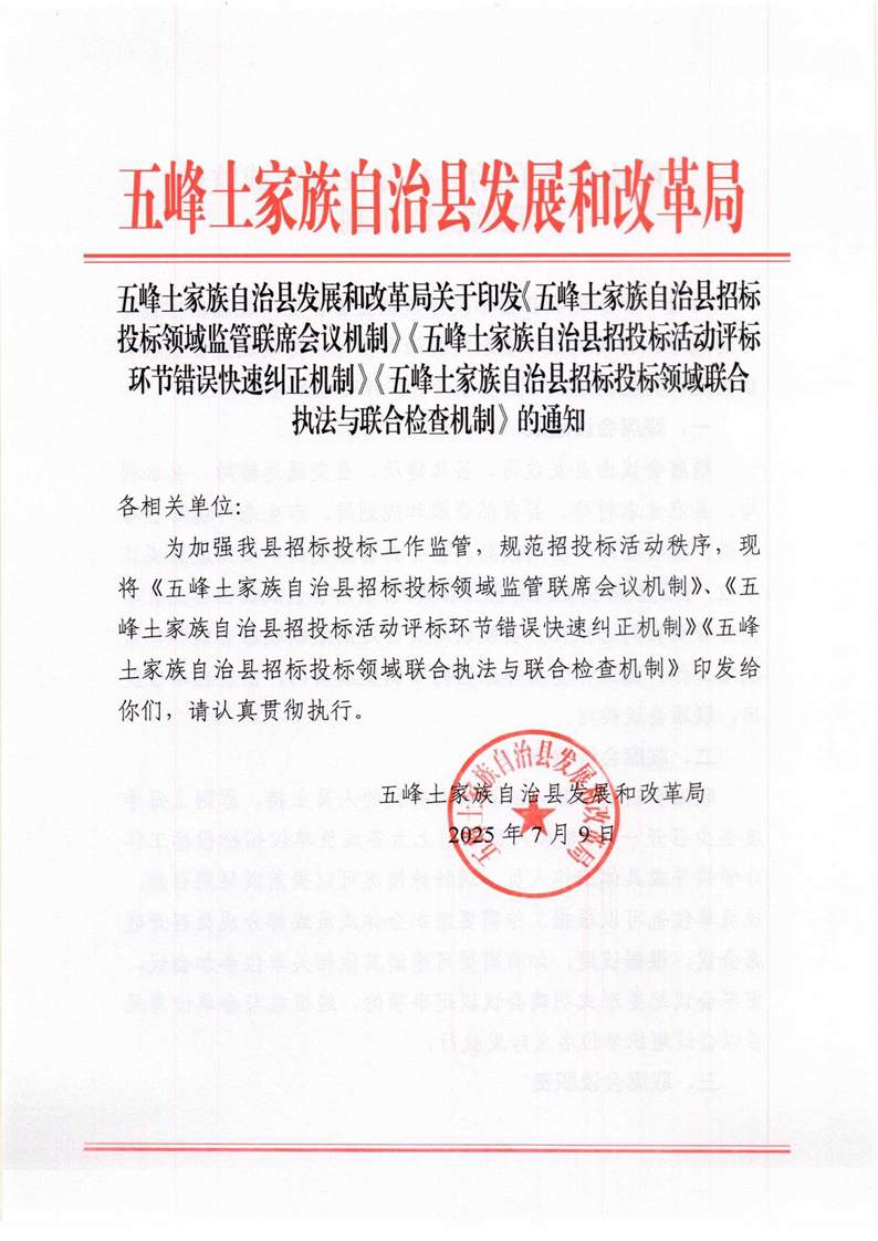 五峰土家族自治县发展和改革局关于印发《五峰土家族自治县招标投标领域监管联席会议机制》《五峰土家族自治县招投标活动评标环节错误快速纠正机制》《五峰土家族自治县招标投标领域联合执法与联合检查机制》的通知