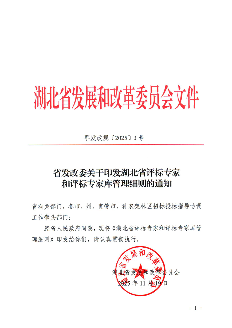 省发改委关于印发湖北省评标专家和评标专家库管理细则的通知