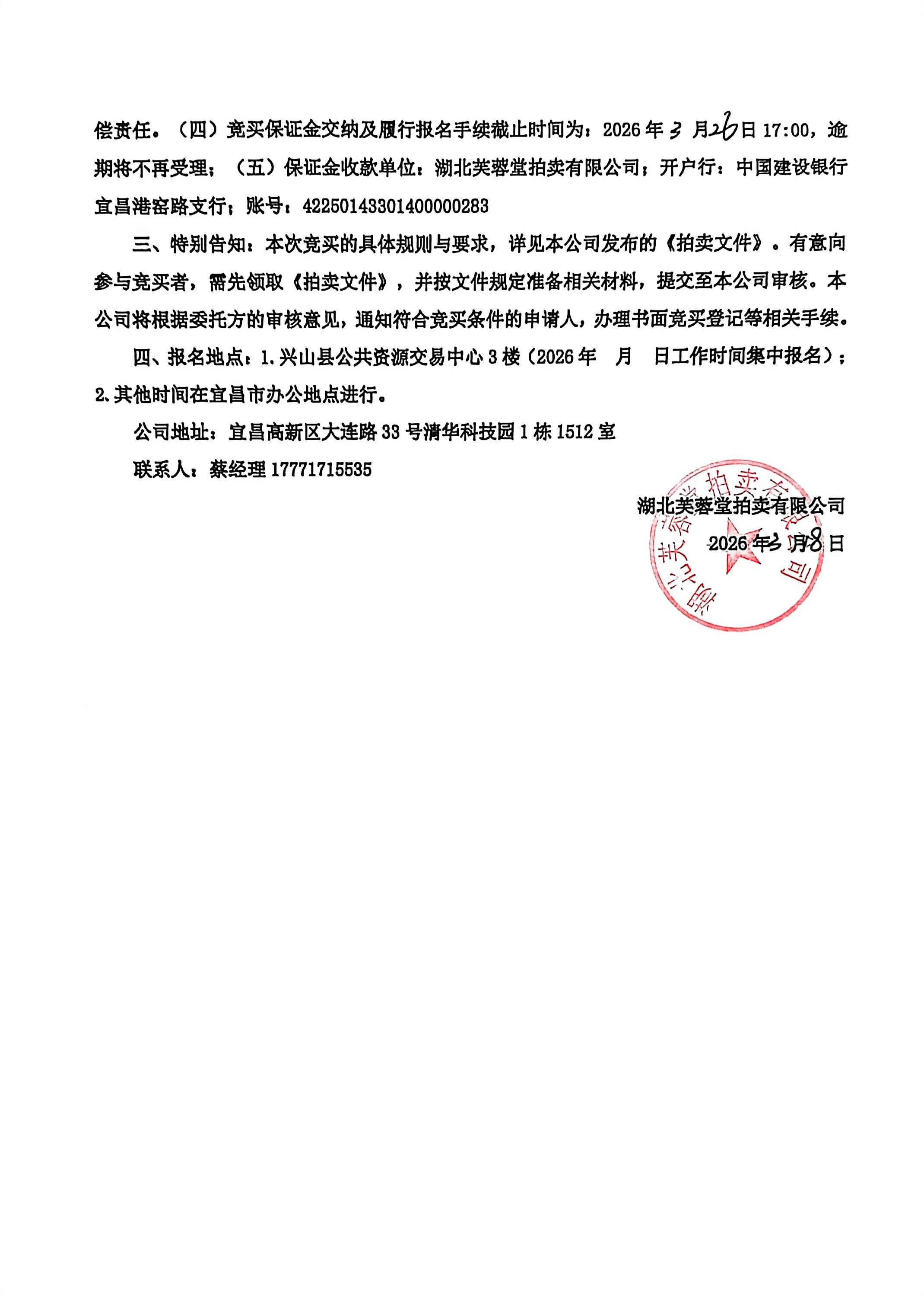兴山县君朝投资发展有限责任公司昭君镇香溪社区浣纱广场(集镇客运站旁)商铺三年租赁权拍卖公告(第二次)