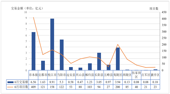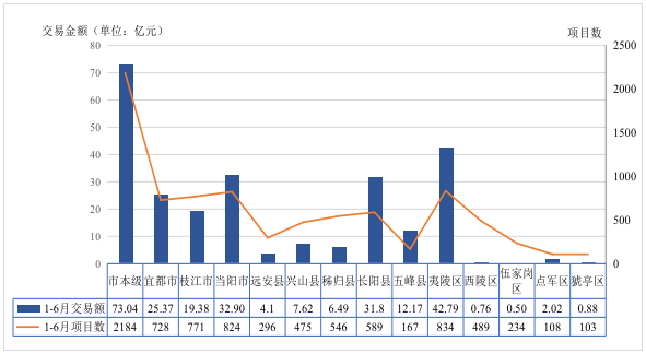 (宜昌市1-6月各县市区公共资源进场交易情况)