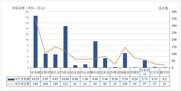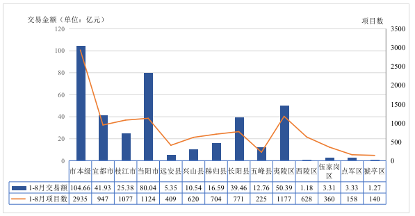 (宜昌市1-8月各县市区公共资源进场交易情况)