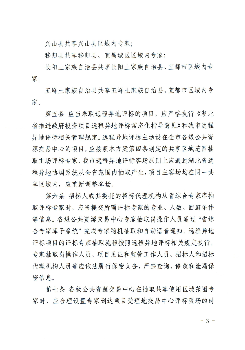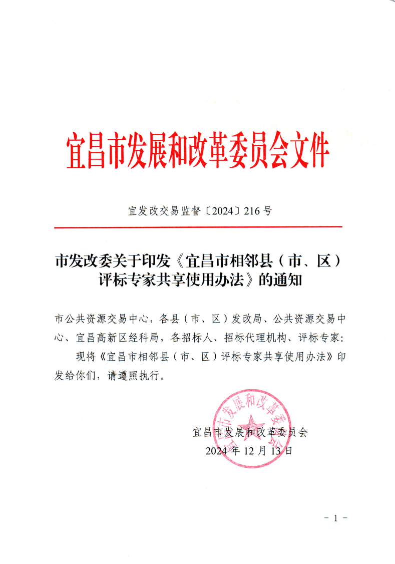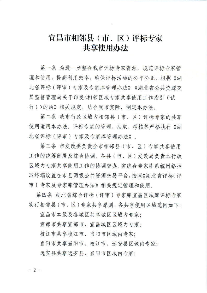 宜昌市发改委关于印发《宜昌市相邻县(市、区)评标专家共享使用办法》的通知