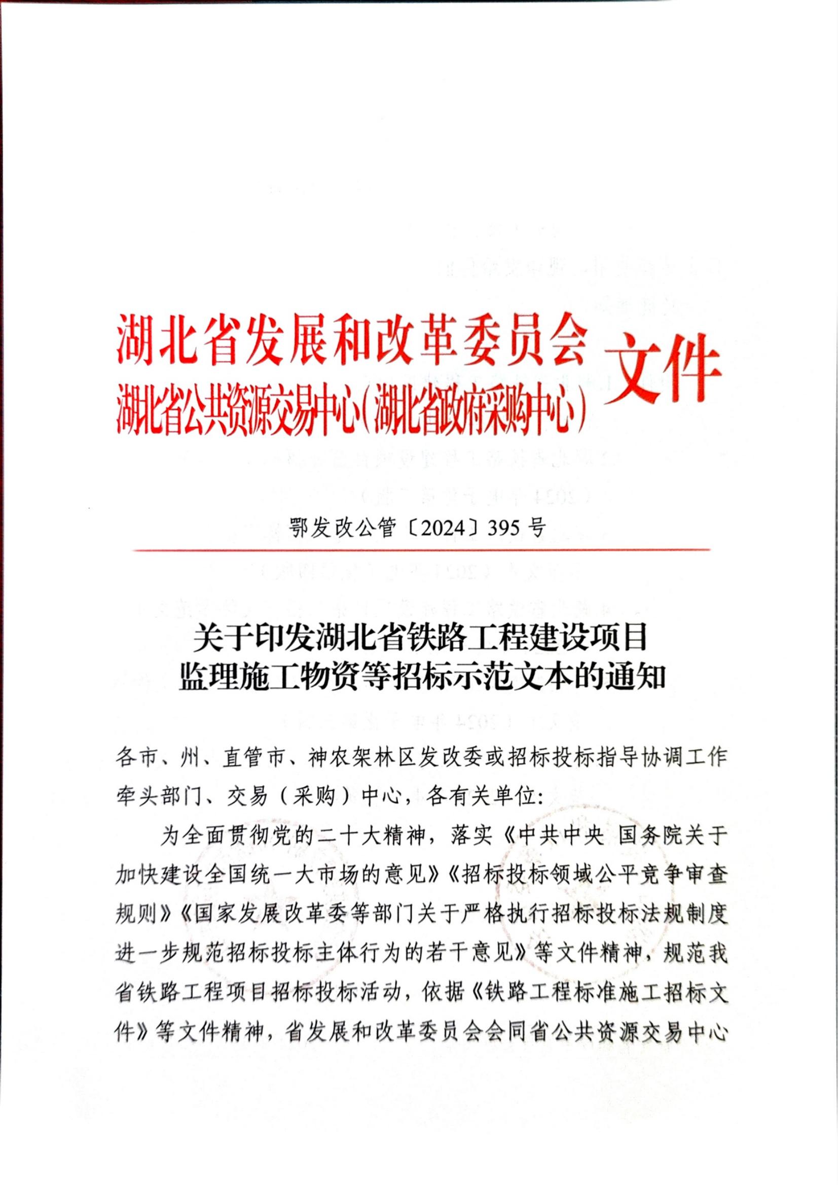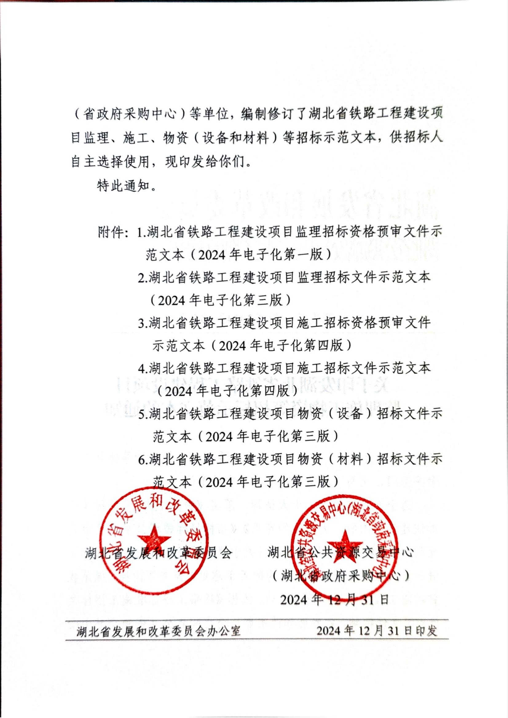 关于印发湖北省铁路工程建设项目监理施工物资等招标示范文本的通知