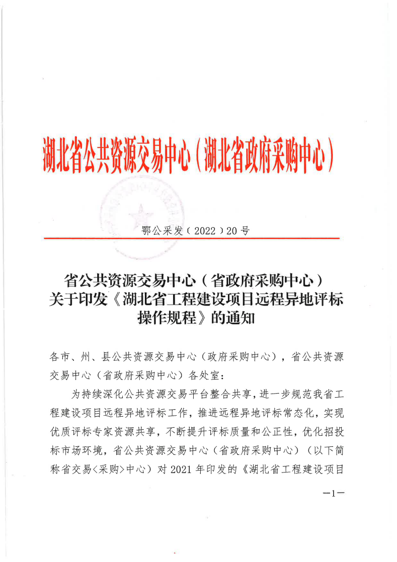 转发:湖北省公共资源交易中心(湖北省政府采购中心)关于印发《湖北省工程建设项目远程异地评标操作规程》的通知