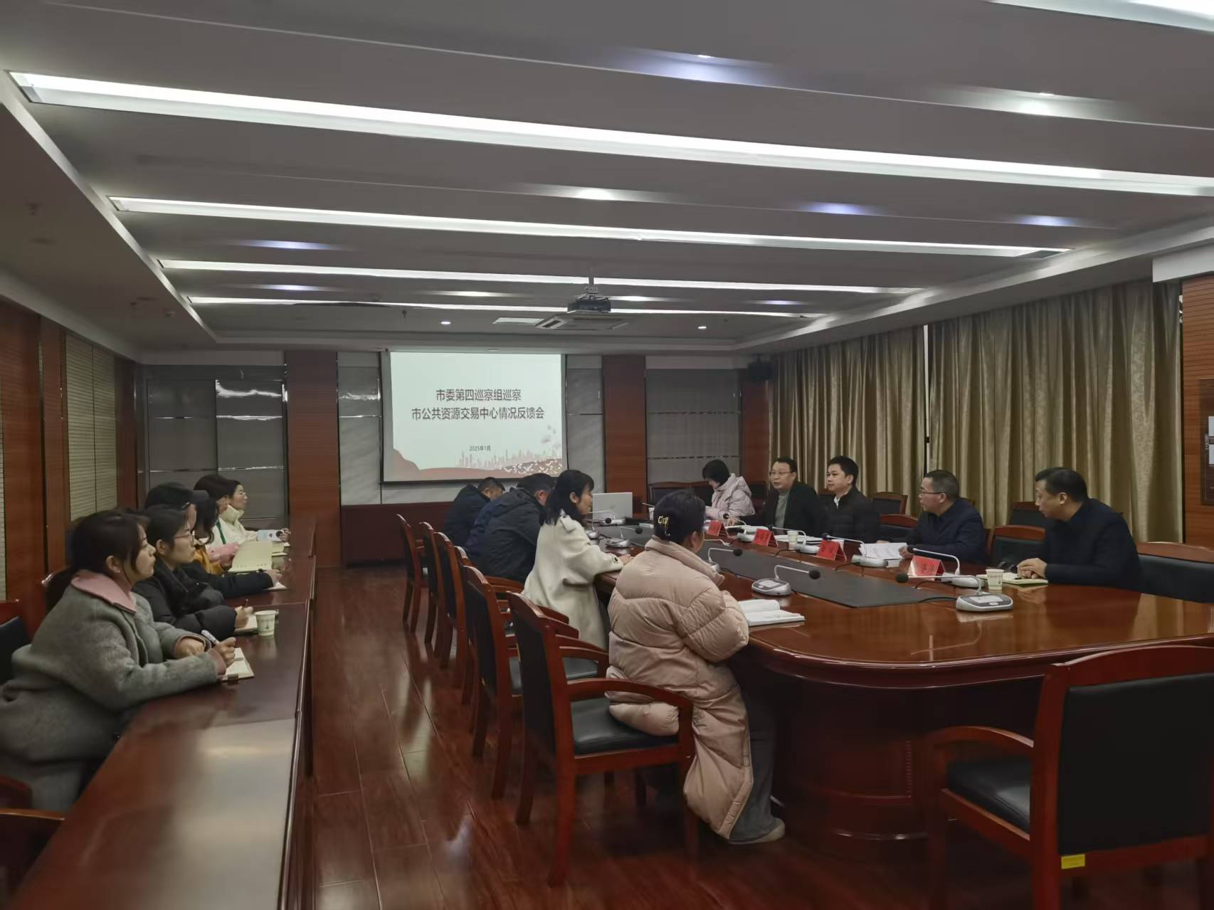 2025年1月24日,市委第四巡察组巡察市公共资源交易中心党组情况反馈会召开。市委第四巡察组组长白斌向市公共资源交易中心党组反馈巡察意见,市委常委、市政府常务副市长徐梅芳出席会议并讲话,市公共资源交易中心党组党组书记、主任龚仁勇主持会议并作表态发言。
