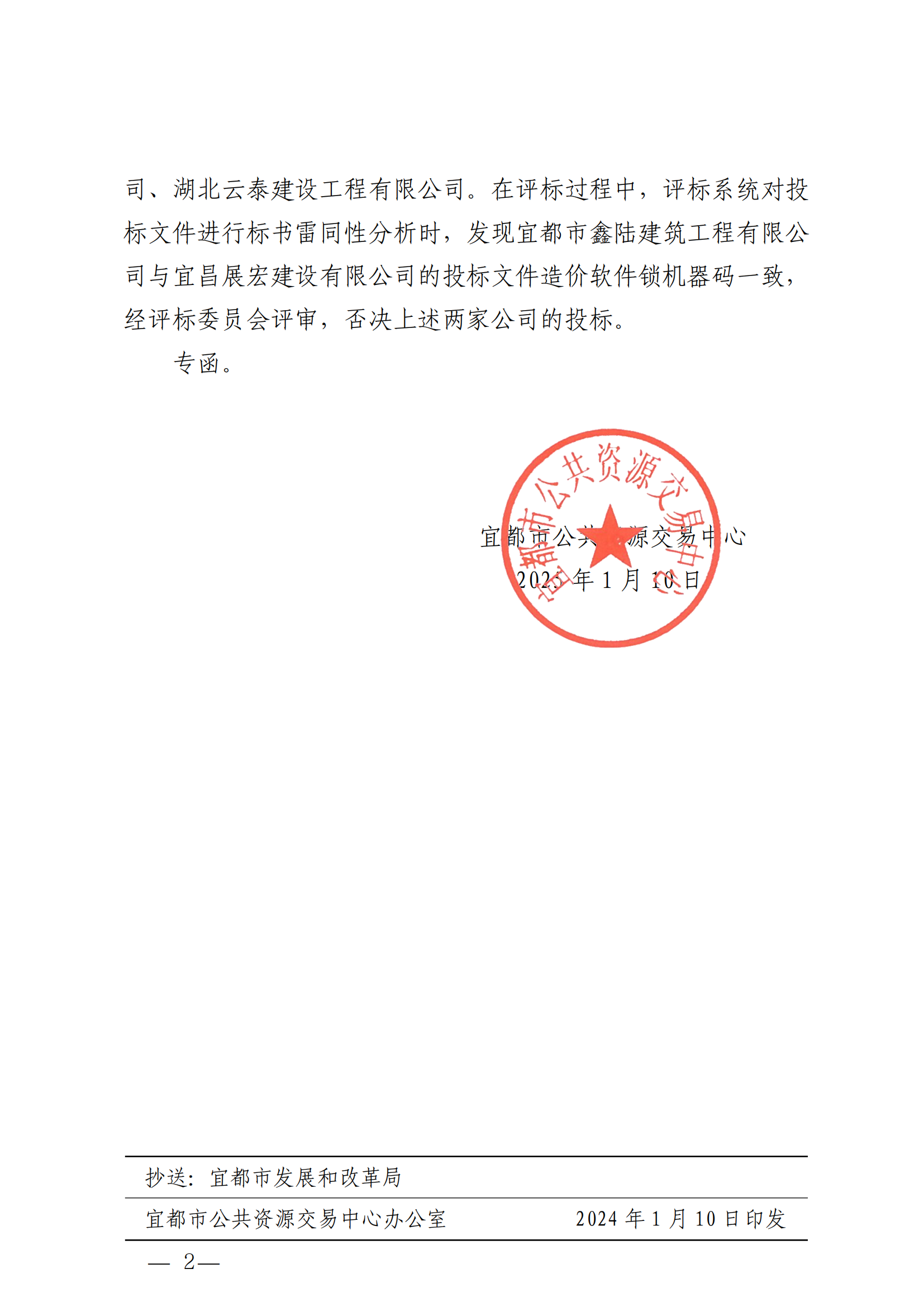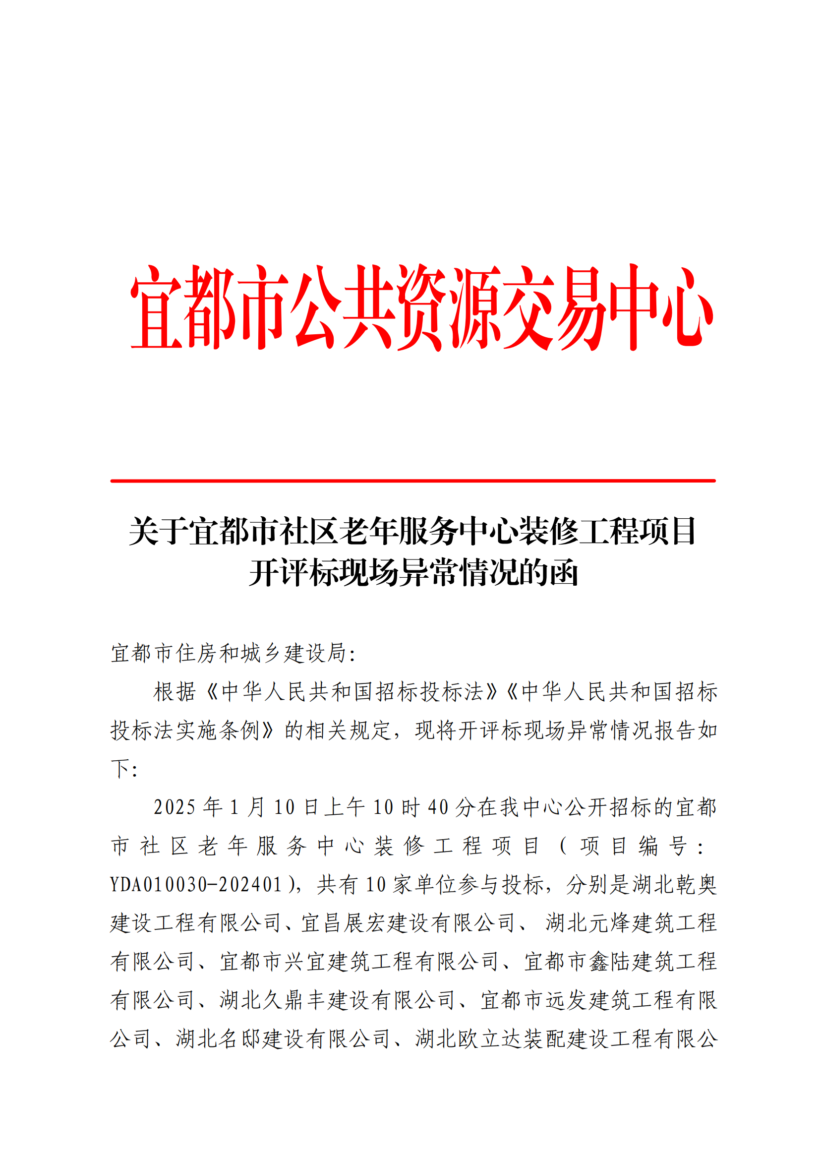 关于宜都市社区老年服务中心装修工程项目开评标现场异常情况的函